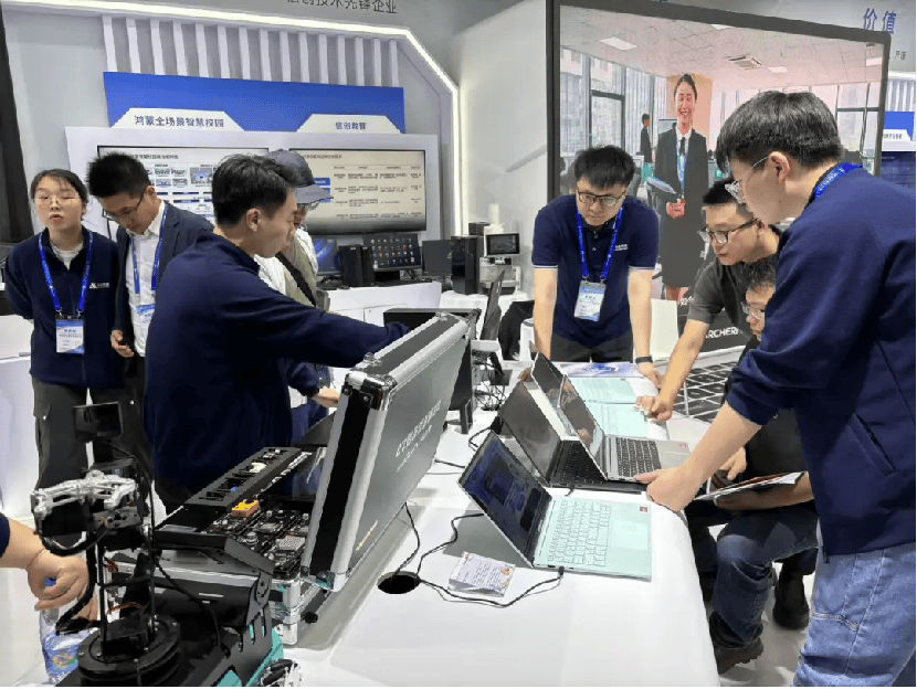 此外,诚迈科技还展出了面向院校信创专业的软硬一体化实训设备:信创综合实训一体机。该产品全面覆盖C86、ARM、LoongArch三大芯片架构,以及多款主流国产操作系统,可解决信创教学中多架构、多环境实训实操的难点。 在鸿蒙人才培养方面,诚迈科技基于开源鸿蒙打造了鸿志系列教育实训产品。此次展出的工业实训平台集成边缘计算网关、PLC控制器、数字孪生模块,覆盖仓储物流、柔性制造、质量检测、设备运维等工业场景,并融合AI能力,适用于工业互联网、智能制造专业的全栈教学与实践。同期展出的鸿志全场景智教平台集成多种通信协议与传感器模块,覆盖智慧工业、智慧农业、智慧家居三大场景,适用于高校计算机、物联网、嵌入式、人工智能等方向的教学。